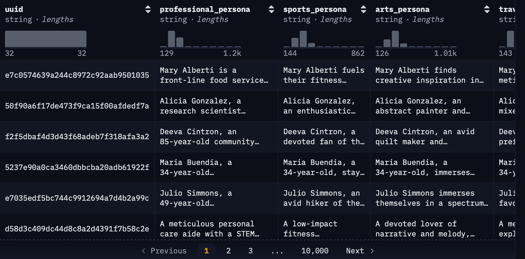 If you're ready to go deeper, an extended version of Nemotron-Personas-USA (including synthetic addresses, occupation hierarchies, and income bands) is available through NVIDIA NeMo Data Designer.