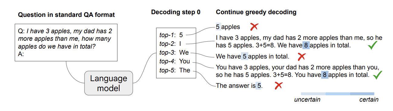 Paper • 2402.10200 • Published • 109Note Our Re-Implementation code: https://github.com/fangyuan-ksgk/CoT-Reasoning-without-Prompting Insight: Decoding time reasoning is cheap, effective, and can bring out the 'inherent' reasoning capacity from pre-trained LLM. Drawback: Indentification of the set of answer, and its location reamains the million dollar question.