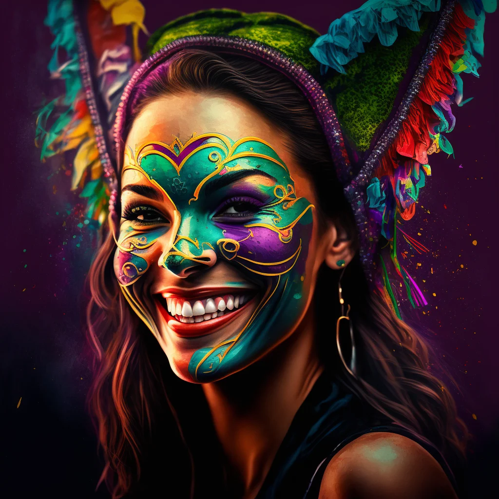 To say I have been fascinated with text to image AI would be a major understatement. The image above is of a woman that does not exist, wearing a “mask” and other Mardis Gras paraphernalia.