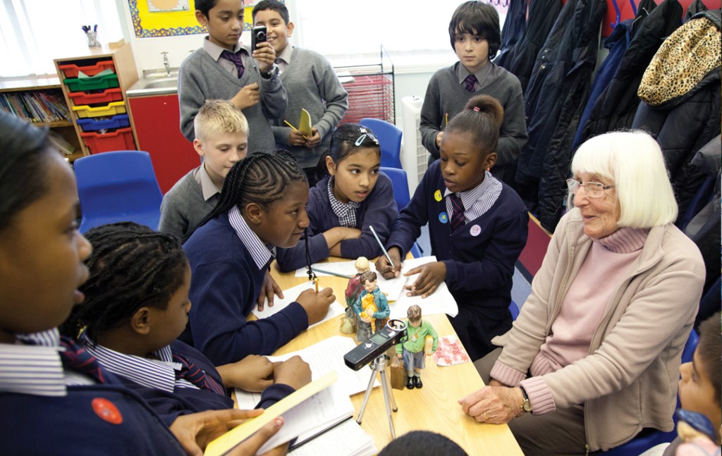 Using writing, visual art and film, Year 6 pupils from Bluecoat Junior School in Walsall explored the stories and journeys made by families from and to the West Midlands, in times of conflict and social change from the Second World War to the present day. The children interviewed evacuees about their experiences and explored stories with parents and many other individuals who have left their homeland because of conflict or for political or economic reasons – hearing personal stories from many diverse places, from Bosnia, Poland, Africa, the Indian sub-continent. They were able to embed these stories within the broader contexts of time and place by research in local history archives, and by sharing the work in progress through public events – open days at the school, a local church and a pop-up shop in the local town centre with a mini vintage cinema.