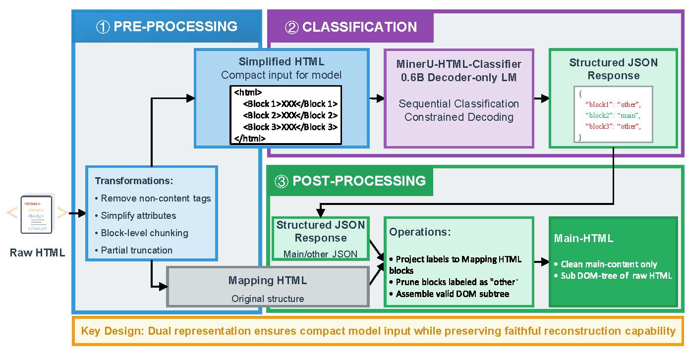 MinerU-HTML Pipeline The detailed pipeline can be found in the AICC technical report: