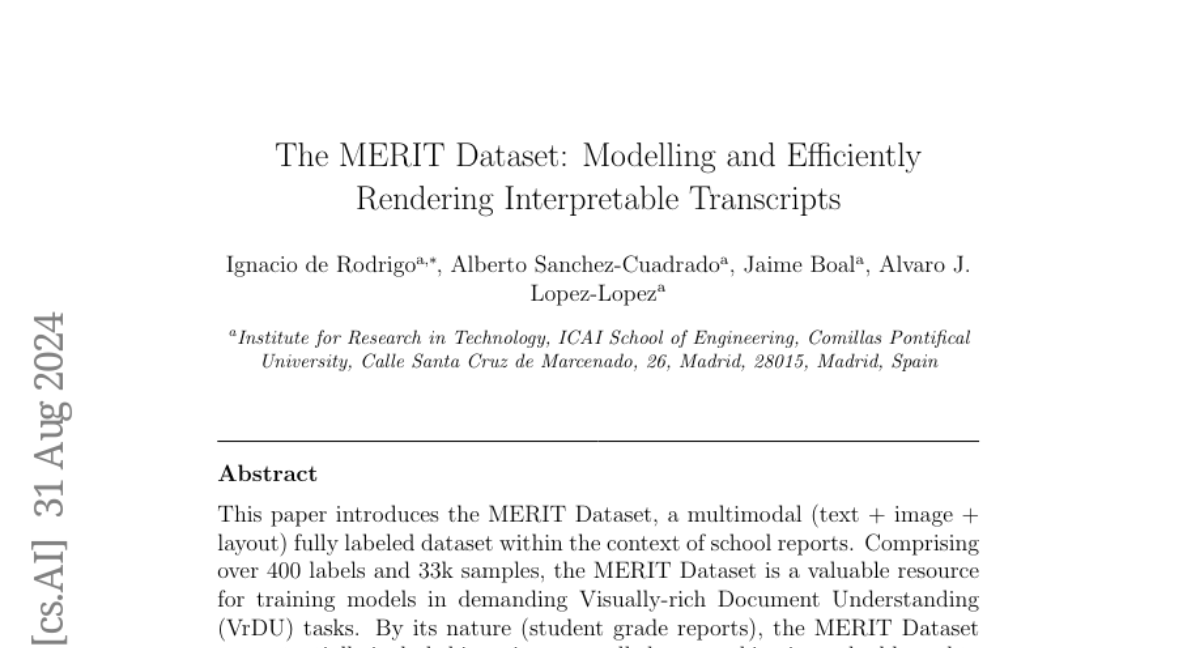 - Paper: The MERIT Dataset: Modelling and Efficiently Rendering Interpretable Transcripts (2409.00447)