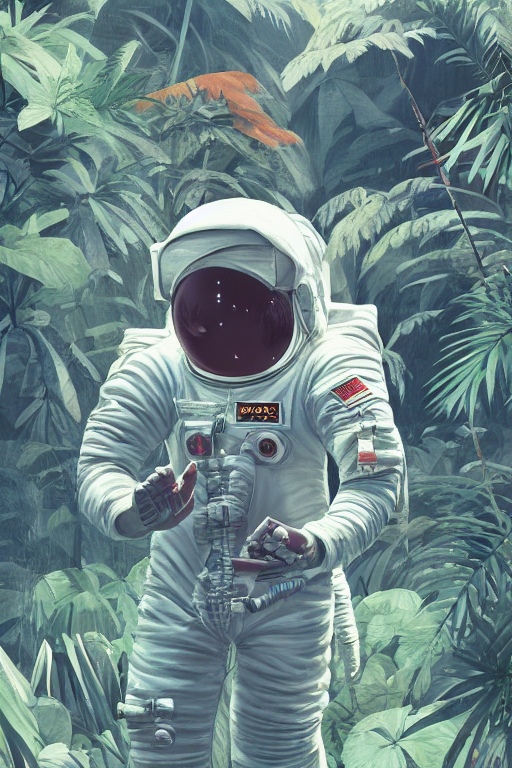image = pipeline("Astronaut in a jungle, cold color palette, muted colors, detailed, 8k", generator=generator).images[0]