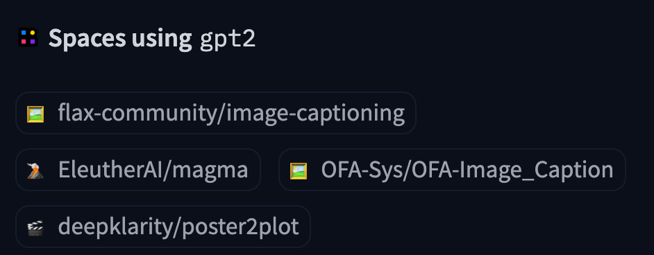 The Hugging Face Hub is also home to Spaces, which are interactive demos used to showcase models. If a model has any Spaces associated with it, you’ll find them linked on the model page like so: