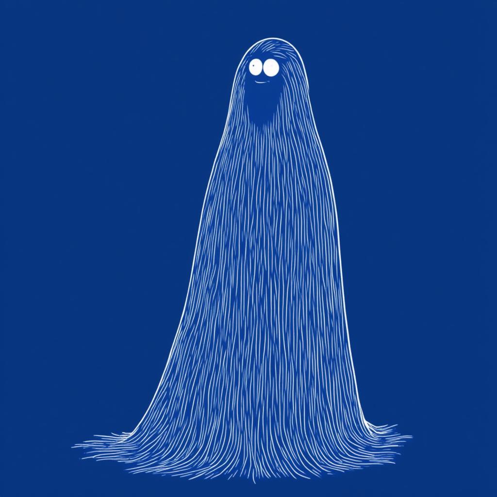 ghost. deep blue, white lines illustration, in the style of TOK, 2