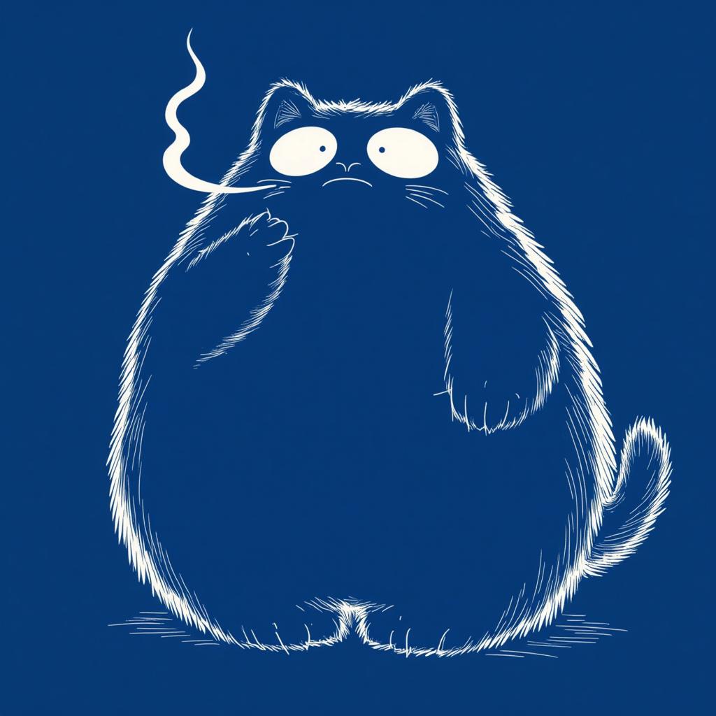 image = pipeline('a fat cat smoking.  deep blue, white lines illustration, in the style of TOK').images[0]