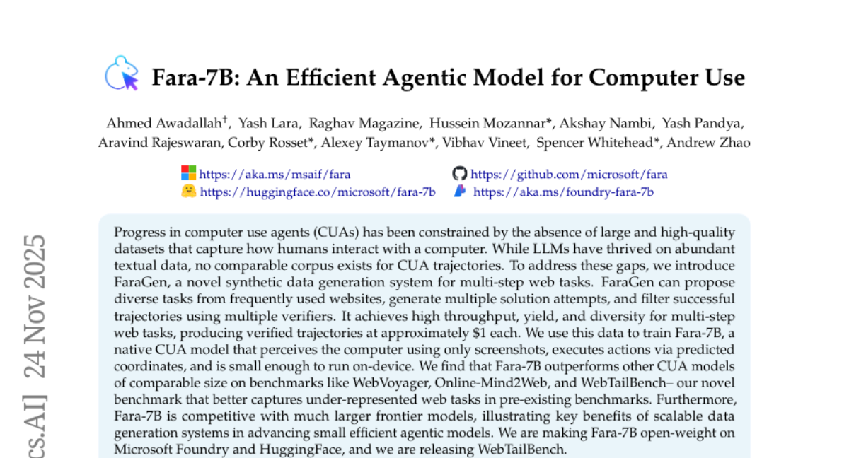 Fara-7B: An Efficient Agentic Model for Computer Use