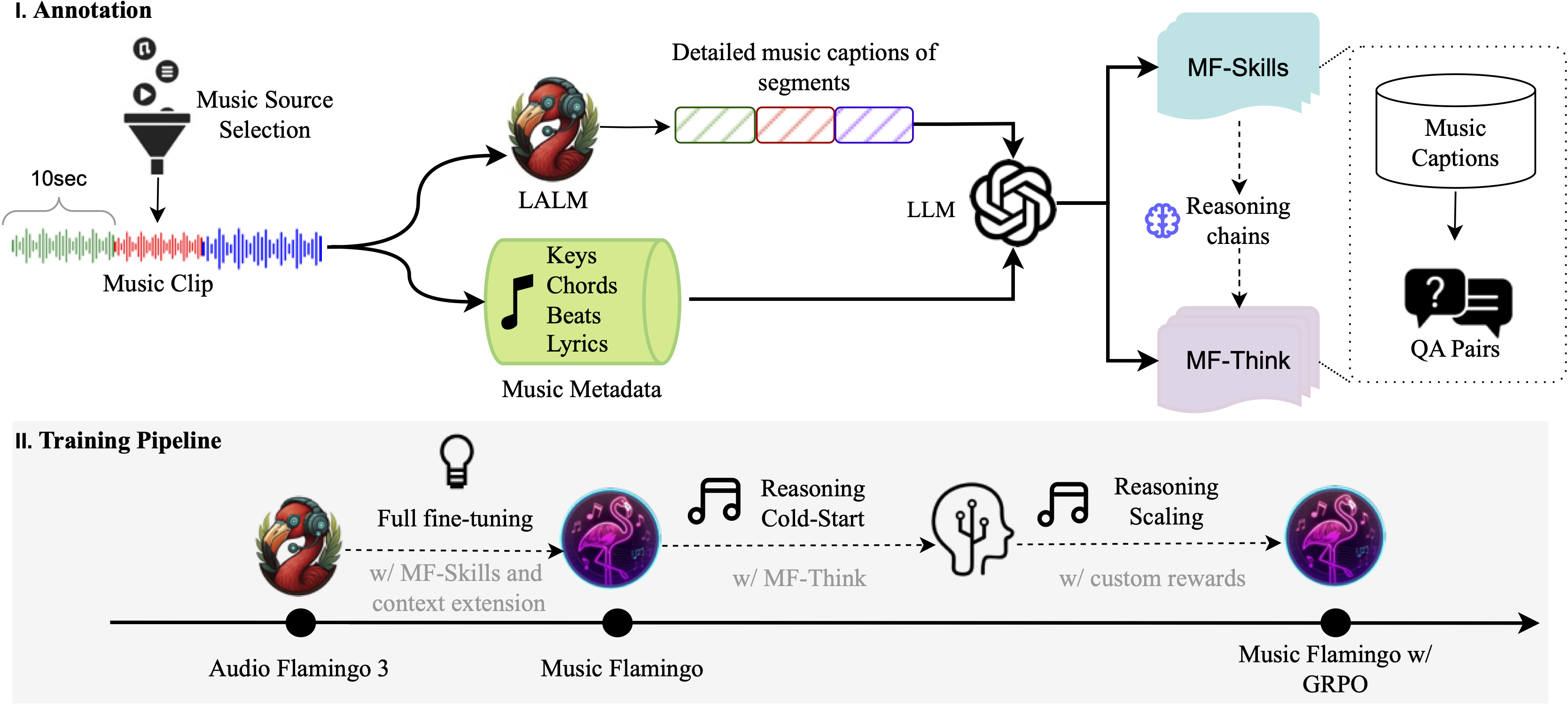 - Rich, theory-aware captions and question answering (harmony, structure, timbre, lyrics, cultural context).