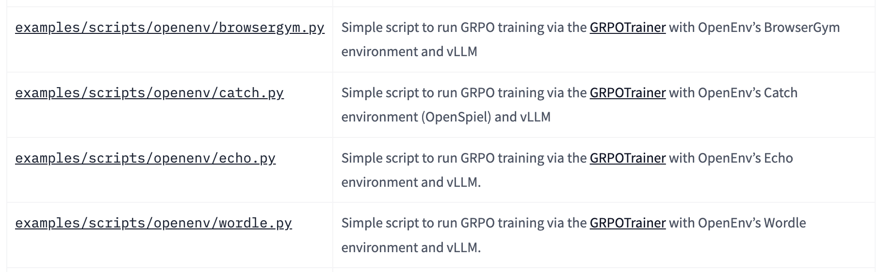 📝 go play with them: https://github.com/huggingface/trl/tree/main/examples/scripts/openenv