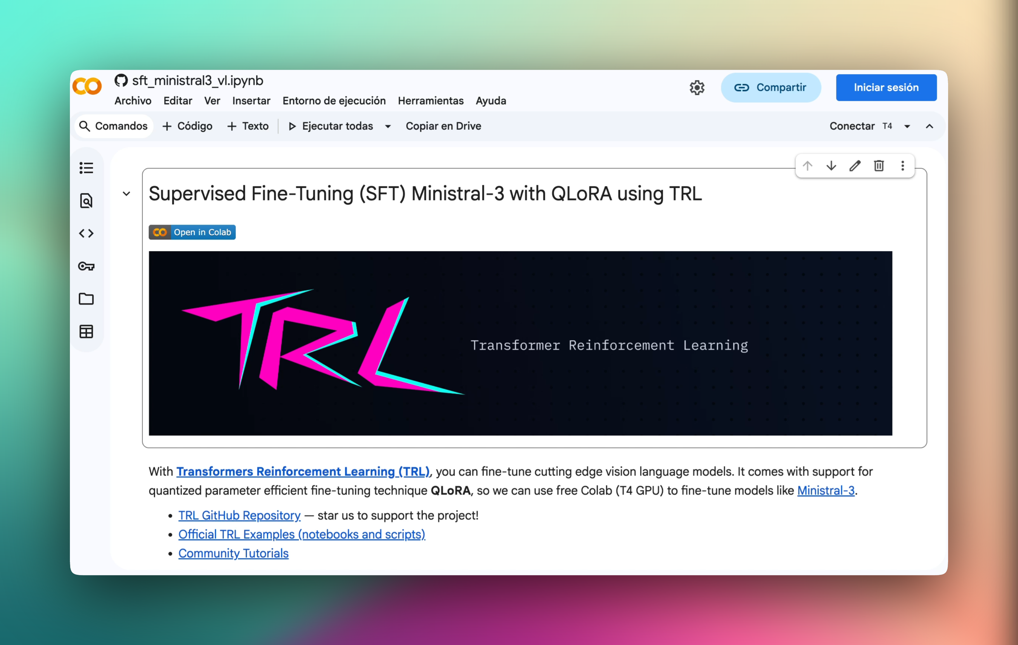 - SFT: https://colab.research.google.com/github/huggingface/trl/blob/main/examples/notebooks/sft_ministral3_vl.ipynb