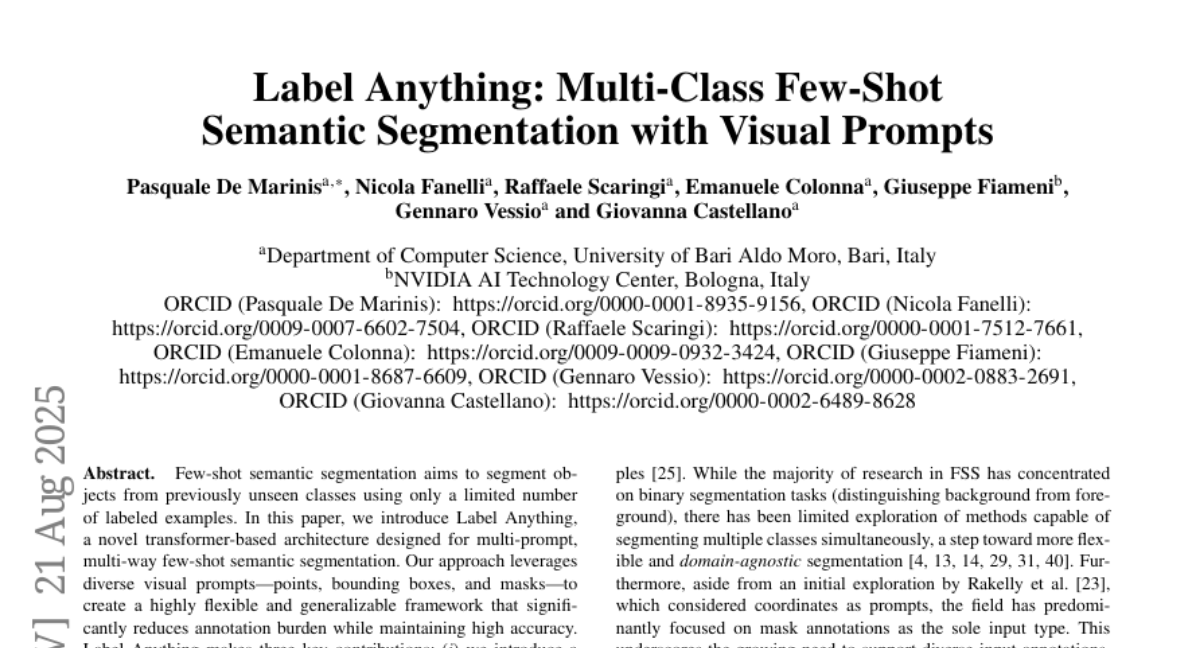 Label Anything performs multi-class few-shot semantic segmentation using visual prompts (bboxes, points, masks)