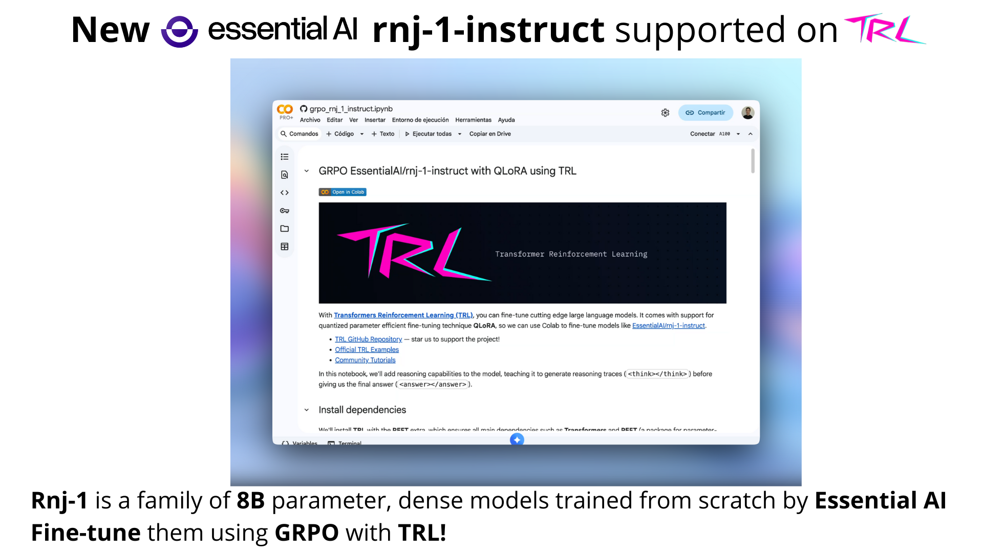 Free Colab link: https://colab.research.google.com/github/huggingface/trl/blob/main/examples/notebooks/grpo_rnj_1_instruct.ipynb