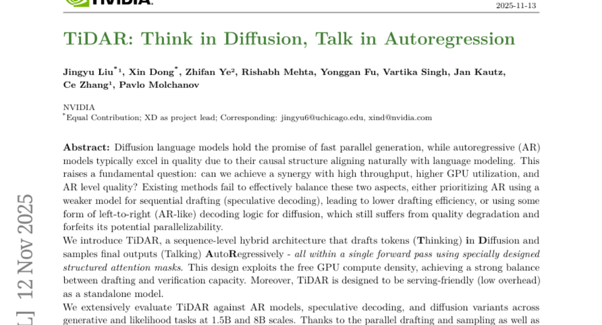 TiDAR: Think in Diffusion, Talk in Autoregression